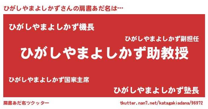 | 男性向けラノベタイトル風あだ名 | 『おまえをオタクにしてやるから、俺をひがしやまよしかずにしてくれ! 』 |