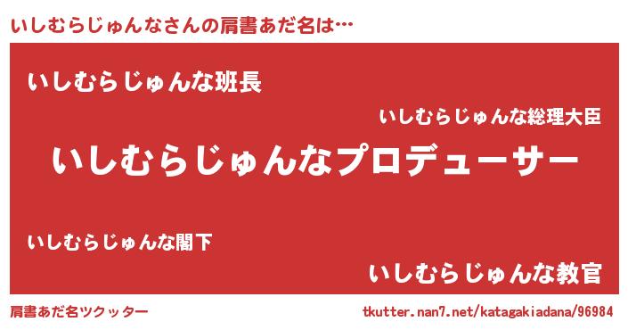 | 伝説のあだ名 | 『解き放たれた遊び人いしむらじゅんな』 |
