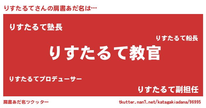 | 男性向けラノベタイトル風あだ名 | 『この素晴らしい世界にりすたるてを!』 |