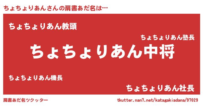 | ヘコむあだ名 | 『ちょちょりあん(震え声)』『ちょふぇ~』 |