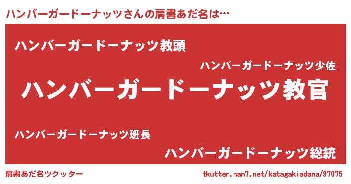 | 男性向けラノベタイトル風あだ名 | 『この素晴らしい世界にハンバーガードーナッツを!』 |