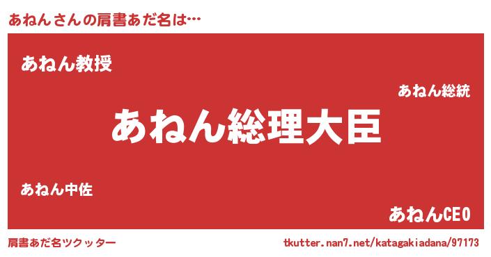 | 女子向けラノベタイトル風あだ名 | 『あねんの婚約者』『死神あねんの再婚』 |