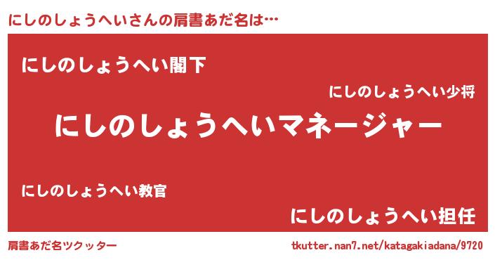 | 意味不明あだ名 | 『自称にしのしょうへい』 |