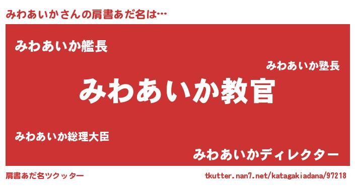 | 意味不明あだ名 | 『住所不定無職みわあいか(86歳)』 |