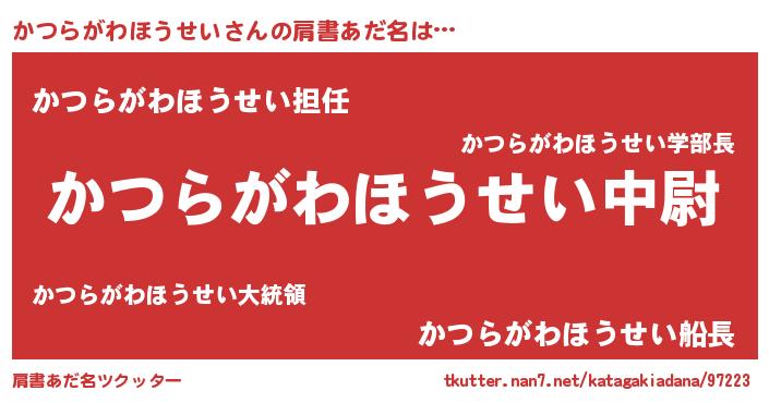 | 男性向けラノベタイトル風あだ名 | 『カツラガワホウセイスレイヤー』 |