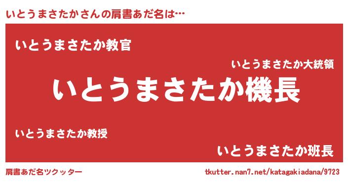 | 男性向けラノベタイトル風あだ名 | 『冴えないいとうまさたかの育てかた』 |