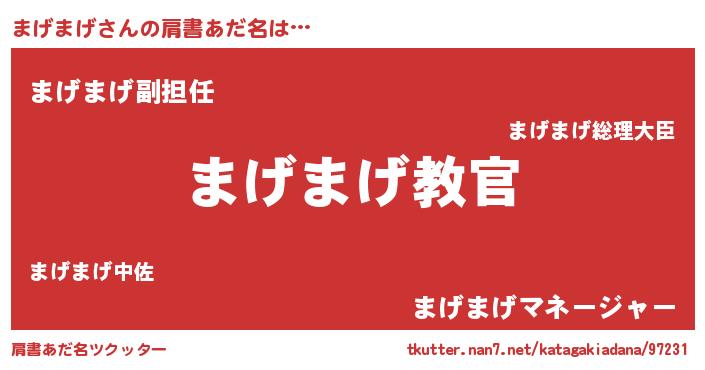 | ヒーロー風カッコイイあだ名 | 『仮面マゲダー』『ネオマゲマゲ』 |