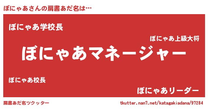 | 男性向けラノベタイトル風あだ名 | 『はたらくぼにゃあさま!』 |
