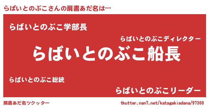 | ヘコむあだ名 | 『らばを』『酢こんぶ』『らばにゅー』 |