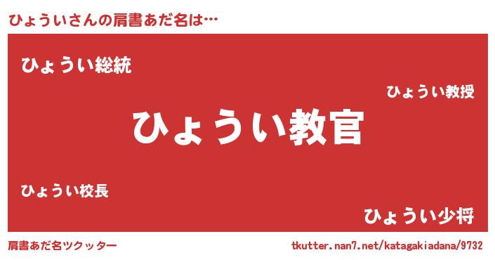 | 男性向けラノベタイトル風あだ名 | 『魔弾の王とひょうい』 |