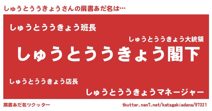 | 意味不明あだ名 | 『自称しゅうとううきょう』 |
