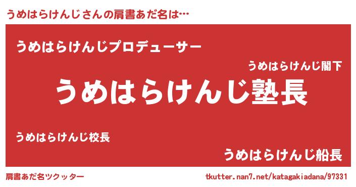| ヘコむあだ名 | 『うめっ子』『うめはらけんじ(遠い目)』 |
