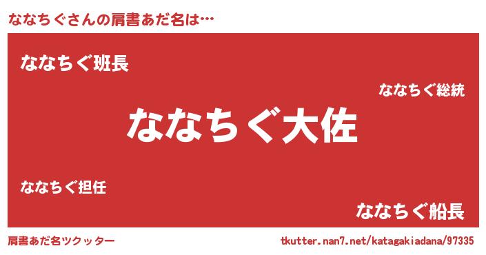 | ポケモン風あだ名 | 『ナナキング』『ヒナナチグ』 |