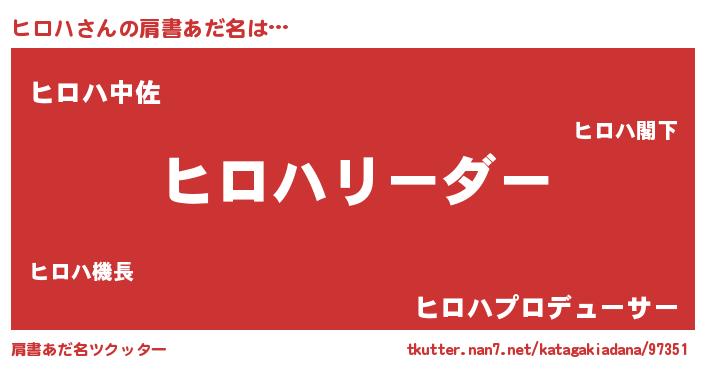 | ヒーロー風カッコイイあだ名 | 『幻影騎士ヒロ』『ウルトラ戦士ヒロハ』 |