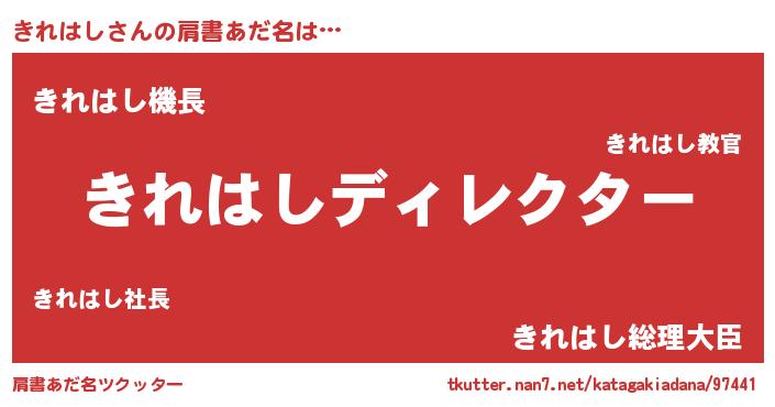 | 恥ずかしいあだ名 | 『きれっちょ』『プリティーきれはし』 |