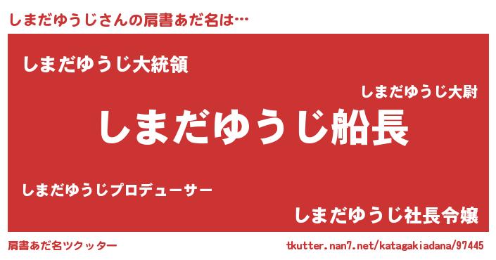 | 男性向けラノベタイトル風あだ名 | 『うちのしまだゆうじが世界を掌握している!』 |