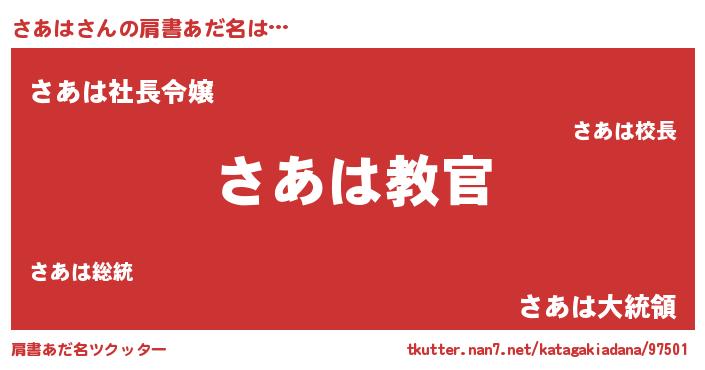 | 男性向けラノベタイトル風あだ名 | 『この素晴らしい世界にさあはを!』 |