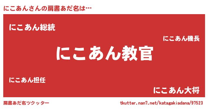 | ヒーロー風カッコイイあだ名 | 『仮面ニコダー』『究極戦士ニコアン』 |
