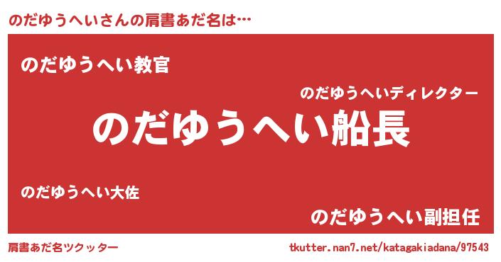 | 男性向けラノベタイトル風あだ名 | 『うちののだゆうへいが世界を掌握している!』 |