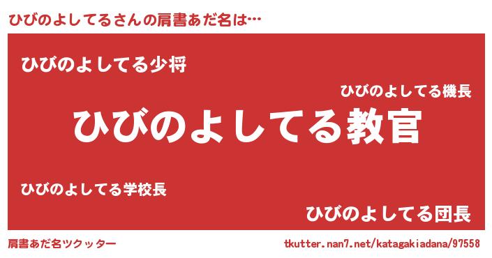| 男性向けラノベタイトル風あだ名 | 『魔弾の王とひびのよしてる』 |