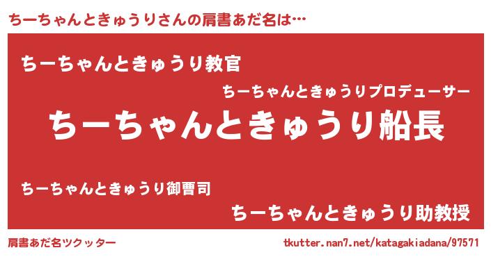 | 伝説のあだ名 | 『魔王と互角に渡り合う技術者ちーちゃんときゅうり』 |