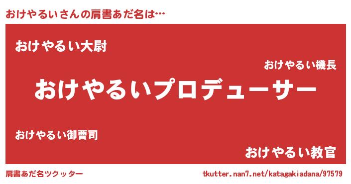 | 男性向けラノベタイトル風あだ名 | 『おけやるいに滅ぼされるだけの簡単なお仕事です』 |