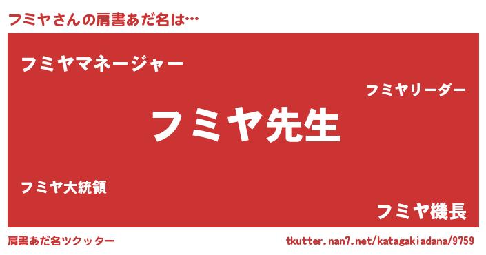 | 意味不明あだ名 | 『永久保存フミヤ』『フミヤフォーエバー』 |