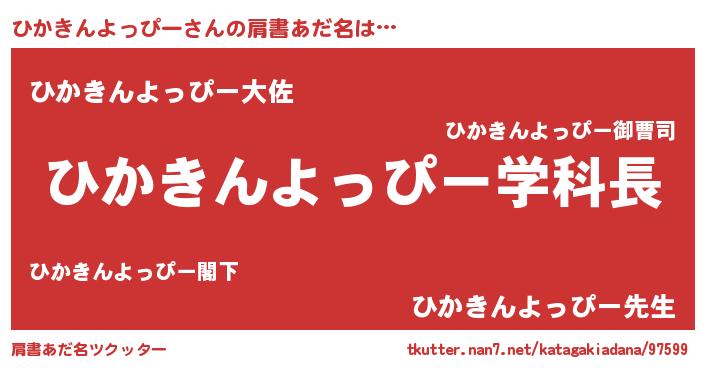 | ヒーロー風カッコイイあだ名 | 『愛の使者ひかきんよっぴー』 |