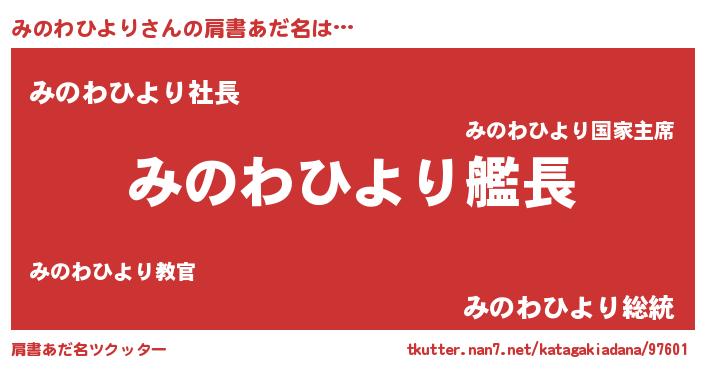 | ヒーロー風カッコイイあだ名 | 『スーパーミノワヒヨリ』『仮面ミノダー』 |