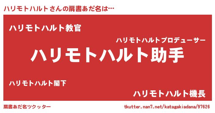 | ヒーロー風カッコイイあだ名 | 『正義の使者ハリモトハルト』 |