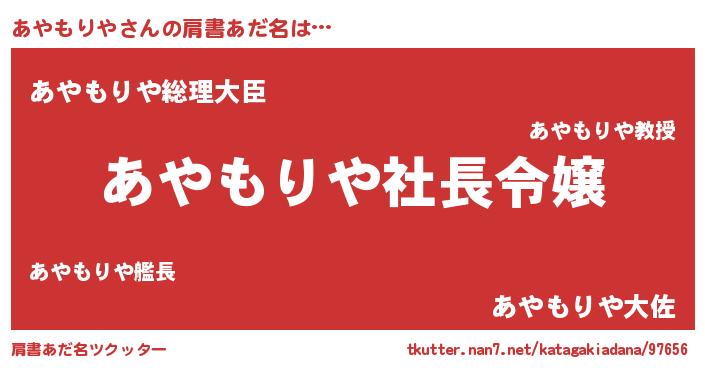 | 男性向けラノベタイトル風あだ名 | 『アヤモリヤアートオンライン』 |