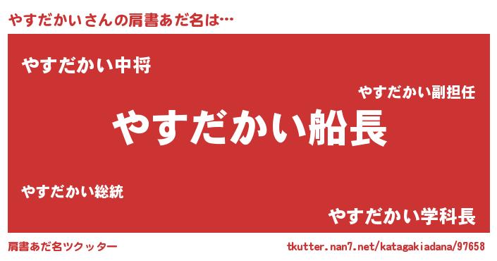 | ヘコむあだ名 | 『やすだかい(小並感)』『やすもー』 |