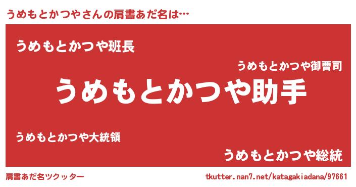 | ヒーロー風カッコイイあだ名 | 『友情の使者うめもとかつや』 |