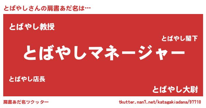 | 男性向けラノベタイトル風あだ名 | 『とばやしに滅ぼされるだけの簡単なお仕事です』 |
