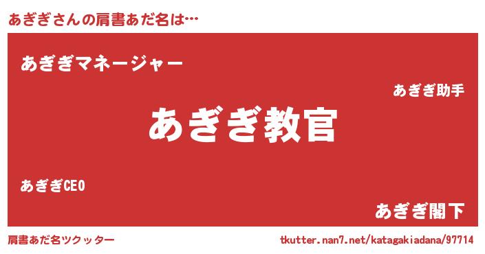 | ヒーロー風カッコイイあだ名 | 『仮面アギダー』『最強戦士アギギ』 |