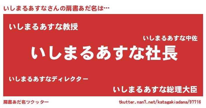 | 恥ずかしいあだ名 | 『プリティーいしまるあすな』『いしちん』 |