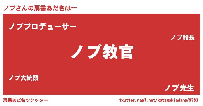 | 男性向けラノベタイトル風あだ名 | 『魔弾の王とノブ』『緋弾のノブ』 |