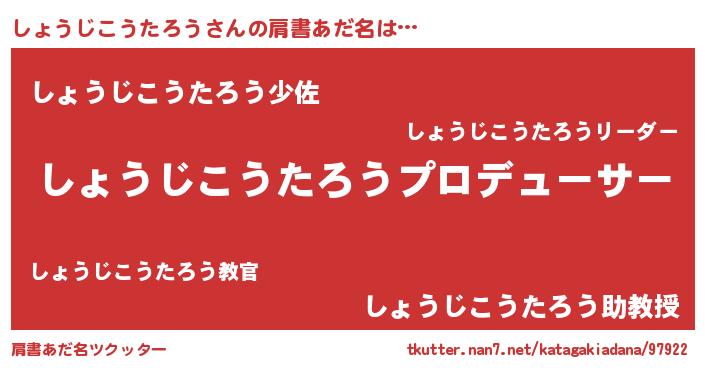| 男性向けラノベタイトル風あだ名 | 『はたらくしょうじこうたろうさま!』 |