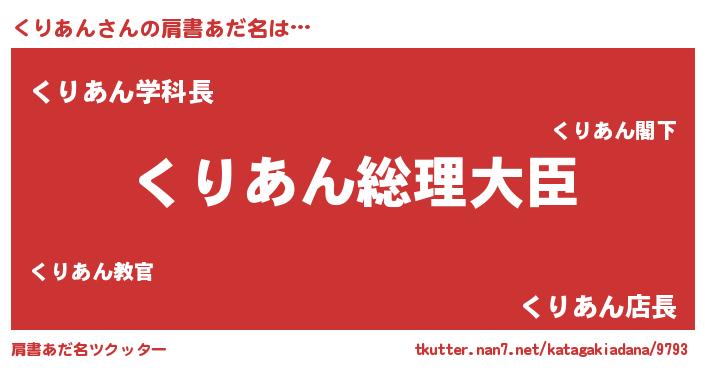 | 意味不明あだ名 | 『くりあんフォーエバー』『自称くりあん』 |