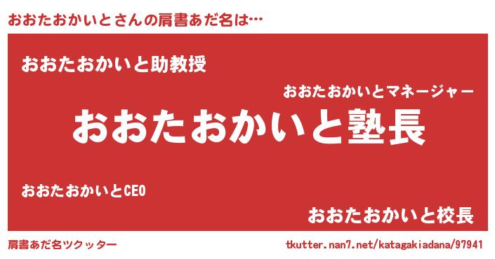 | 意味不明あだ名 | 『とにかく怪しいおおたおかいと』 |