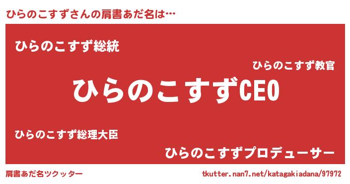 | 恥ずかしいあだ名 | 『プリティーひらのこすず』『ひらっちょ』 |