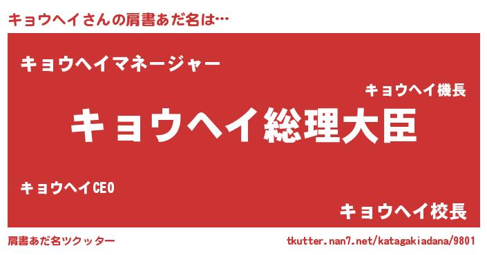 | 意味不明あだ名 | 『キョウヘイフォーエバー』 |