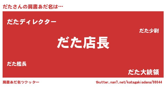 | ヘコむあだ名 | 『だたにゅー』『豆乳』『だた太郎』 |