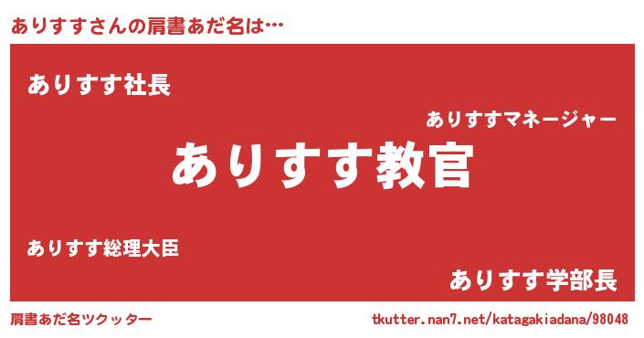 | 胡散臭い通販商品みたいなあだ名 | 『あなたにだけ特別に提供する世界で10本だけ現存している希少なブランデー…その名も「ありすす」』 |