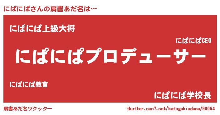 | ヒーロー風カッコイイあだ名 | 『正義の使者にぱにぱ』『仮面ニパダー』 |