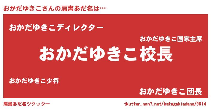 | 女子向けラノベタイトル風あだ名 | 『おかだゆきこの契約王妃』 |