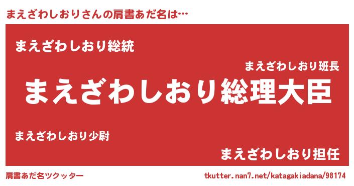 | 女子向けラノベタイトル風あだ名 | 『まえざわしおりの雑貨屋さん』 |