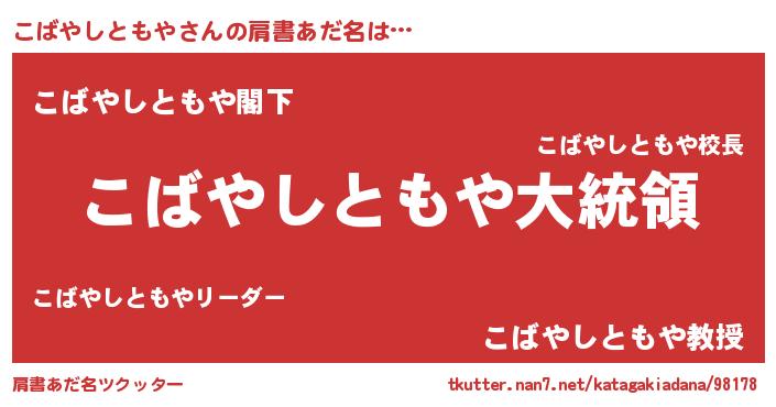 | ファンタジー風あだ名 | 『エターナルコバヤシトモヤー』 |
