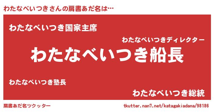 | 欧米人風あだ名 | 『わたなべいつき・ステッグマイヤー』 |