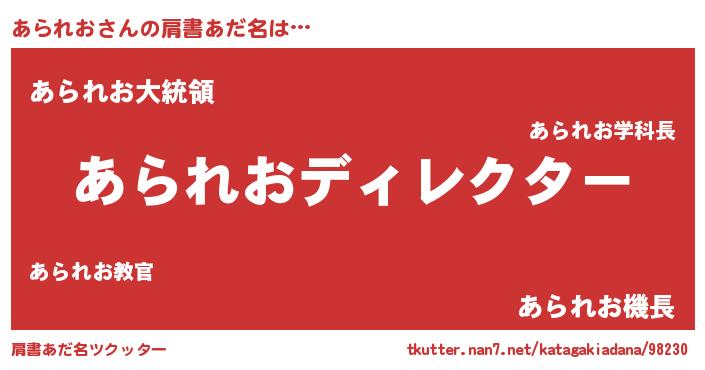 | ヒーロー風カッコイイあだ名 | 『ウルトラあられおマン』『仮面アラダー』 |